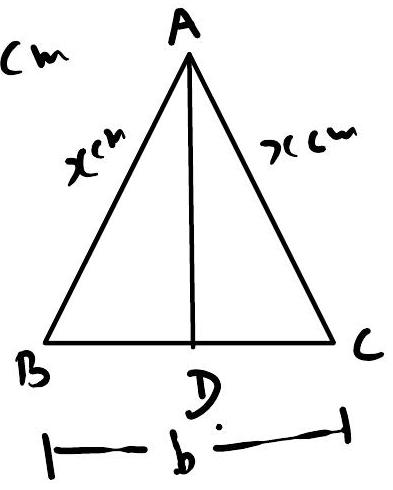 Let $A B=A C=x \mathrm{~cm}$