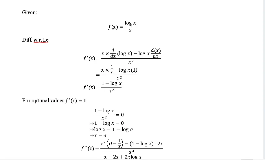 Q.1. Show that the function given by f(x) = logx/x has a maximum at x = e.
