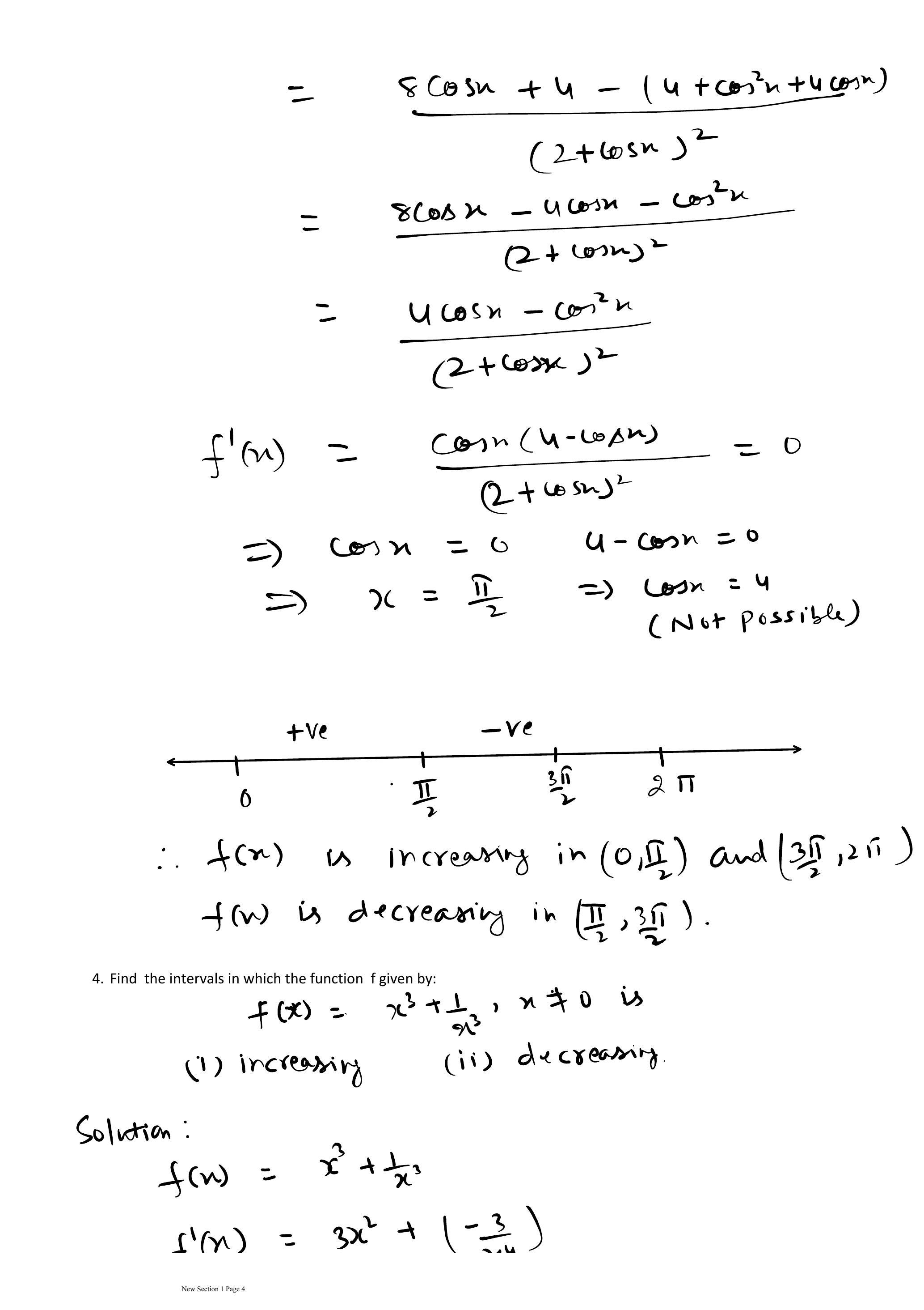 & f^{\prime}(x)= \frac{\cos x(4-\cos x)}{(2+\cos x)^{2}}=0 \
